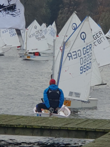 19. Februar, 11 Uhr: Boote (Optis) klar machen mit Kaffee und Kuchen, wahrscheinlich bei Rüdiger
